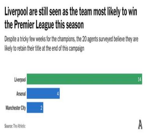TA经纪人调查:红军最有机会夺得英超冠军,伯恩利最可能降级