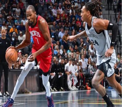 文班亚马和杜兰特展开对决。文班亚马是新赛季状态爆棚的一位球员。本场前,他身兼本赛季的防守篮板王和盖帽王,场均得到25.6分12.9个篮板3.1次助攻1.3次抢断4.1次盖帽。马刺在取得5连胜开局后,但近期却遭遇连败;杜兰特本赛季有场均24分5.3个篮板2.7次盖帽1.1次抢断,命中率47.4%,三分命中率37.5%,火箭5胜2负。