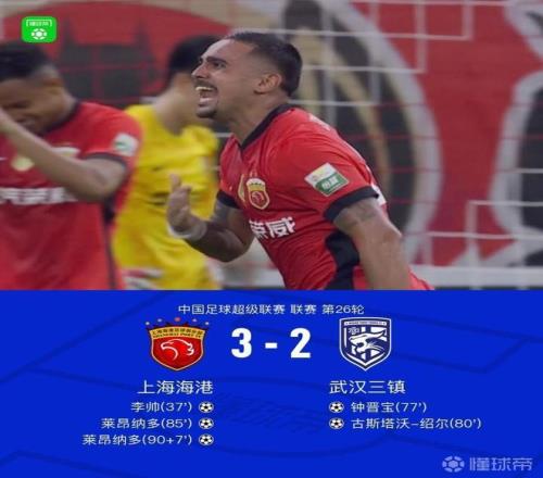 同样是在第26轮,海港与成都隔空争夺榜首。与成都的比赛不同,海港队在比赛中一度落后,莱昂纳多在比赛的85分钟和伤停补时阶段各入一球帮助海港实现逆转,同时反超成都登顶积分榜。