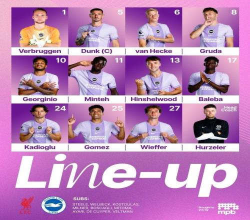 北京时间12月13日23:00,英超第16轮继续进行,利物浦坐镇安菲尔德迎战布莱顿,赛前双方首发阵容陆续公布: