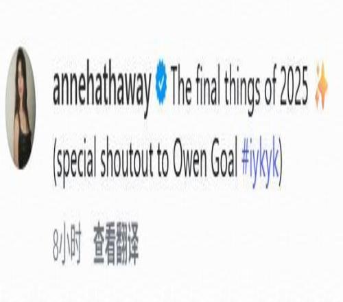 知名枪迷、美国著名演员安妮-海瑟薇在社媒写道:向Owen Goal致敬。(Owen Gaol谐音own goal(乌龙球),意指阿森纳近4场制造了4记乌龙球。)