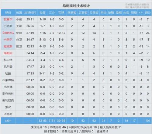 文班复出之后打了9场比赛,前7场替补出战,马刺6胜1负;最近两场比赛,文班重返首发阵容,马刺0胜2负。今天文班投篮16中7,三分6中2,罚球12中10,拿到26分14篮板3助攻1抢断1盖帽2失误,正负值-17并列全场最低。