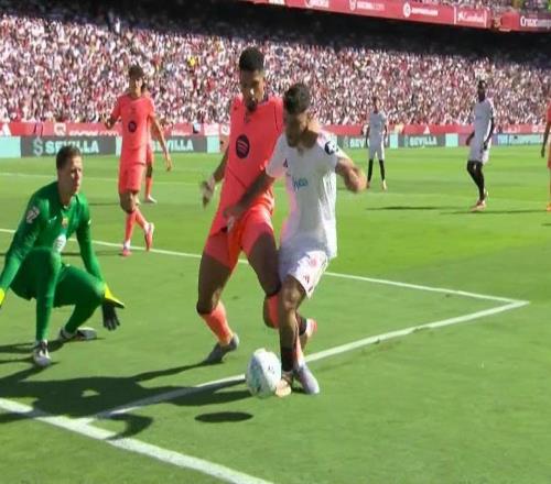 在2025-26赛季西甲第8轮,巴塞罗那客场对阵塞维利亚。阿劳霍绊人犯规,主裁判回看慢镜头之后判罚点球。比赛的第10分钟,罗梅罗禁区中路停球之后强行突破,阿劳霍先是伸手拉人,随后伸