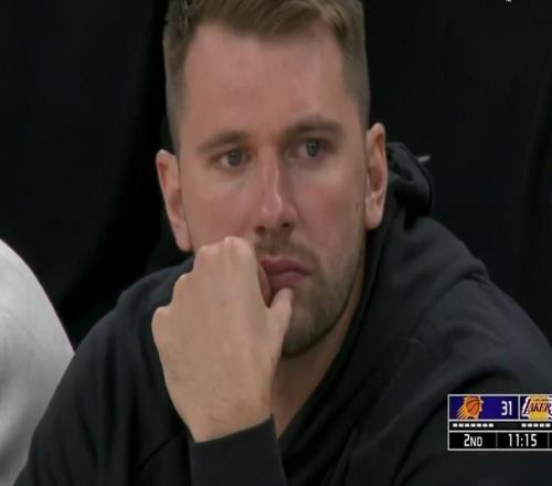 雷速体育10月4日讯 今日NBA季前赛,湖人对阵太阳。次节比赛初段,湖人场上大比分落后,画面给到场边观战的东契奇。季前赛前两场,东契奇将因为伤病管理暂不登场。