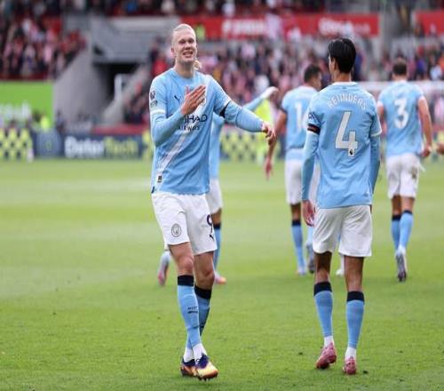 雷速体育10月6日宣 英超第7轮,曼城客场以1-0力克布伦特福德,哈兰德为球队打进制胜球。在本赛季的英超联赛,哈兰德已打进9球,成为金靴的最大热门,但他并未因此而满足,而是将目光瞄