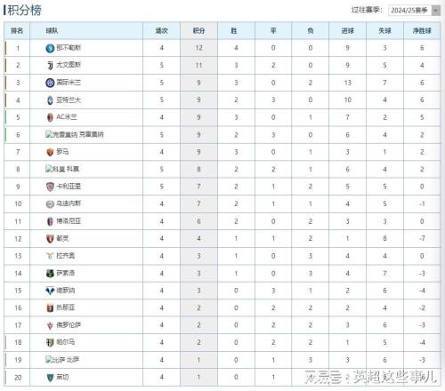 意甲最新积分榜:国米2球完胜攀升第3,尤文战平劲敌仍居第2!
